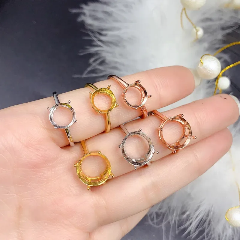 4-Prong S925 Sterling Silver Gold Plated Ring Setting for Round 3-15mm Gemstones