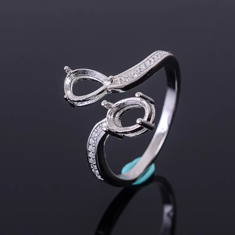 5x7mm Oval Cluster Setting Ring Gemstone Setting 925 Silver Gold Plated
