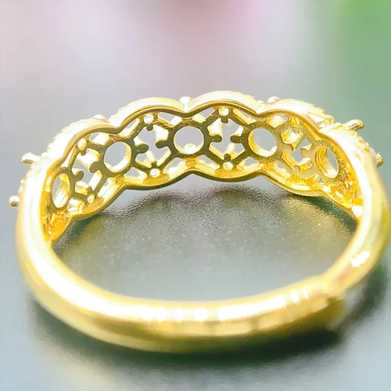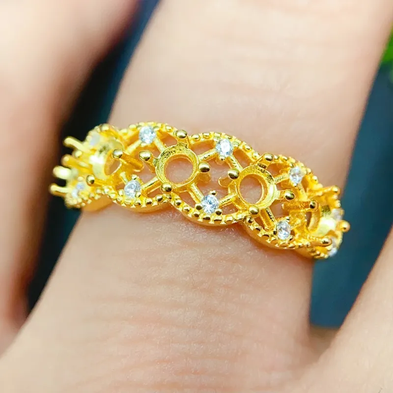 Lace Pattern S925 Sterling Silver Stacking Ring Setting with 18K Gold Plating - Round 3x3mm Multi-Stone Mount