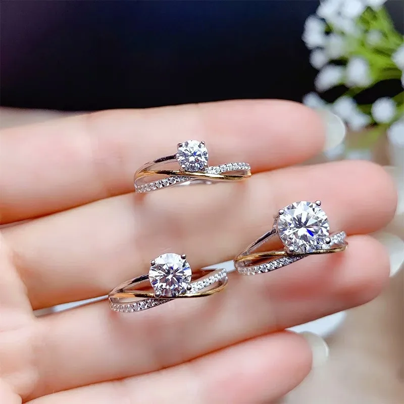 925 Silver 18K Two-Tone Gold-Plated Ring Setting For 5/6.5/8mm Round Moissanite