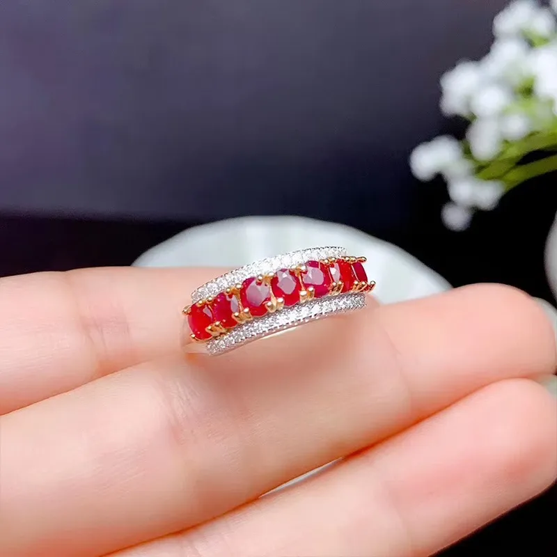 925 Silver Gold Plated Eternity Band Setting For 7-Stone 3x4mm Oval Colored Gemstones