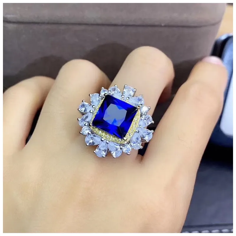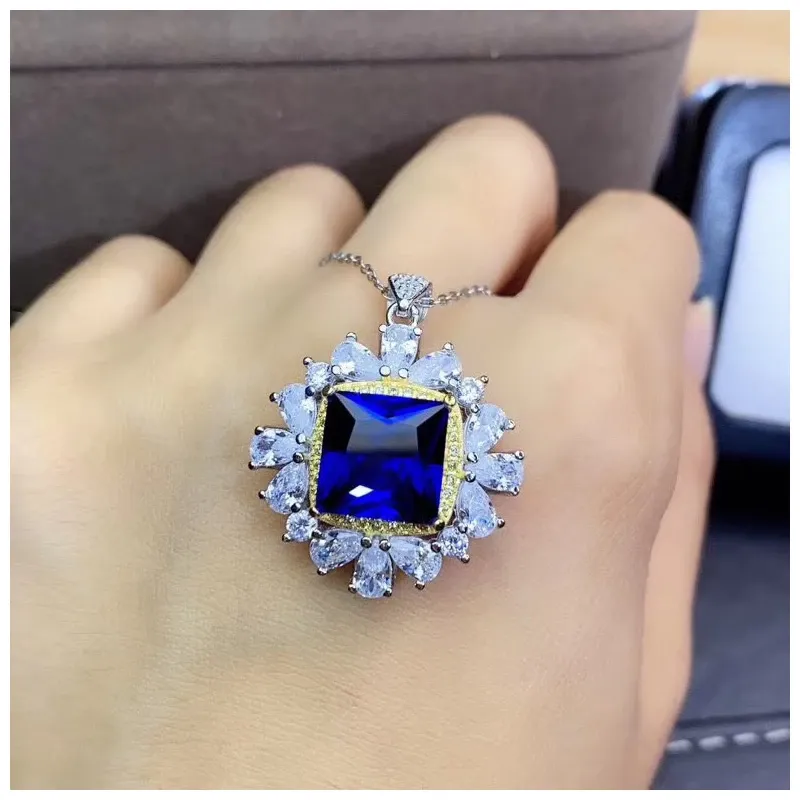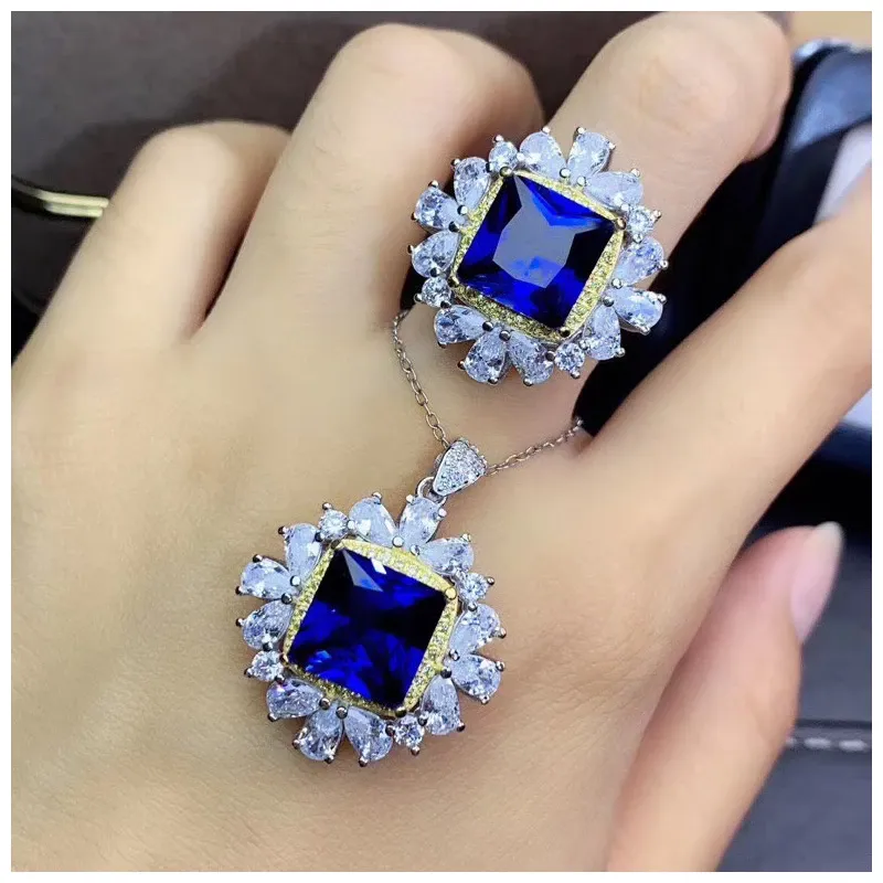 925 Sterling Silver 18k Gold-Plated Teardrop Halo Ring & Pendant Setting For 10x10mm Square Gemstones
