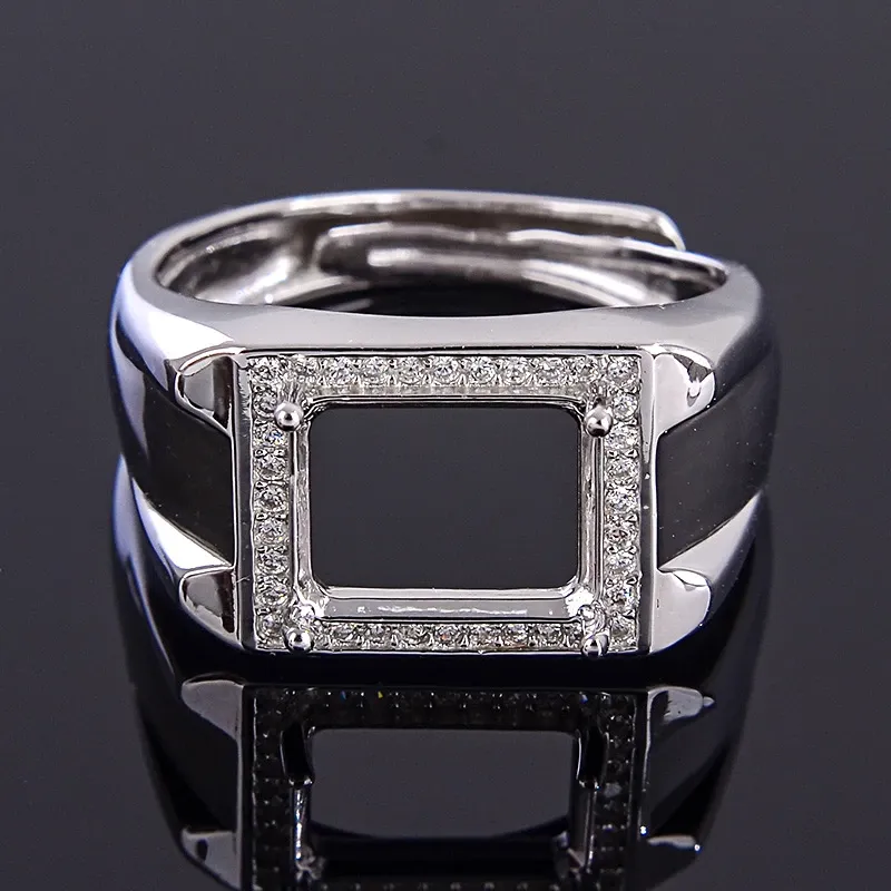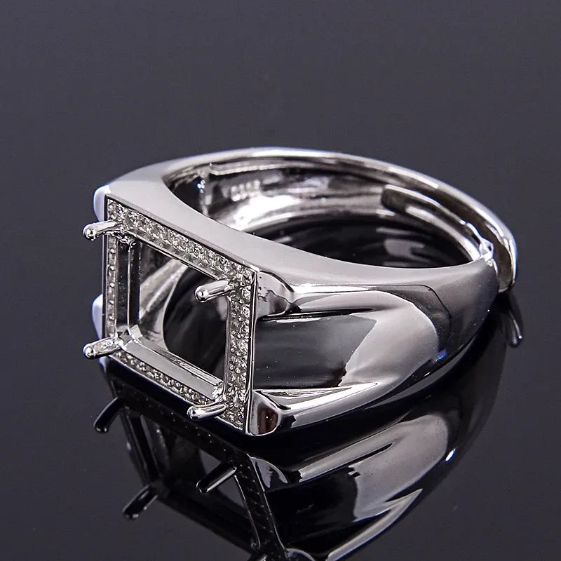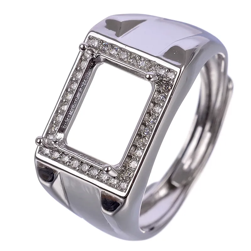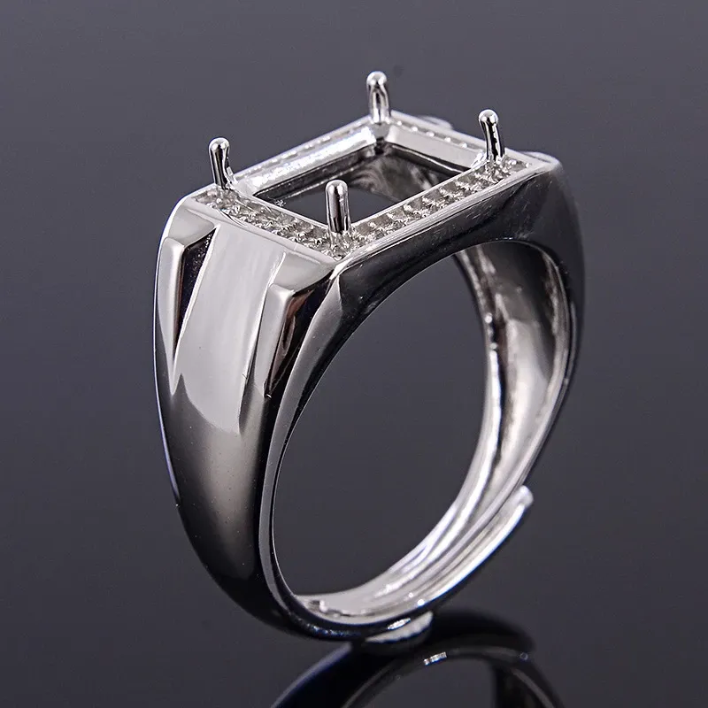 Rectangle 8x11m Gemstones Solid 925 Sterling Silver Men's Ring Setting