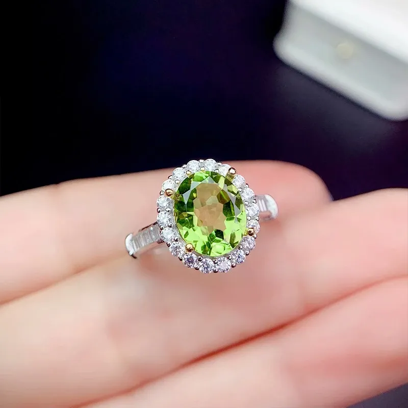 S925 18K Dual-Tone Gold Ring Setting T-Baguette Halo for 8x10mm Oval Topaz/Peridot