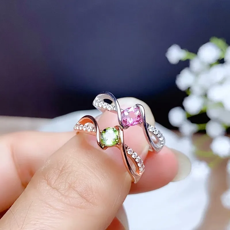18K Gold-Plated Bezel/Tension Ring Setting For 4mm Round Faceted Tourmaline/Moissanite 925 Silver