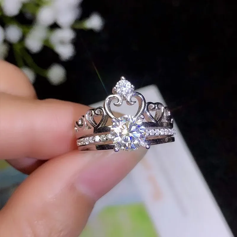 S925 18K Gold-Plated Crown-Style Ring Setting for 6.5x6.5mm (1ct) Round Moissanite