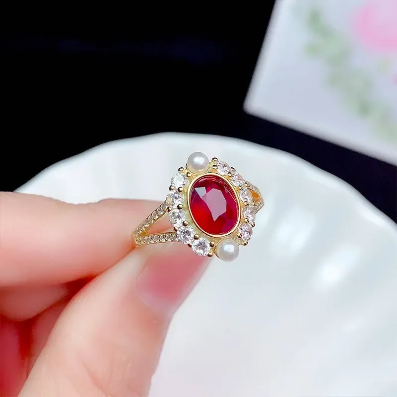 S925 18K Gold Plated Open Ring Setting - Bezel Set 6x8mm Oval Ruby/Sapphire/Emerald