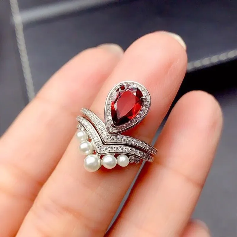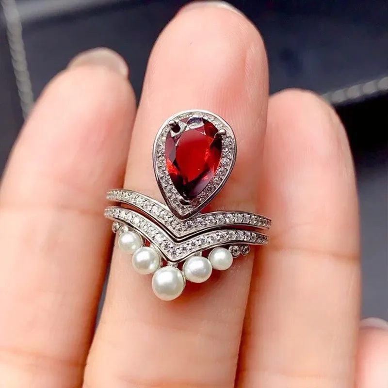 S925 18K Gold Plated Ring Setting 2-in-1 Convertible 6x9mm Pear Ruby/Sapphire/Emerald