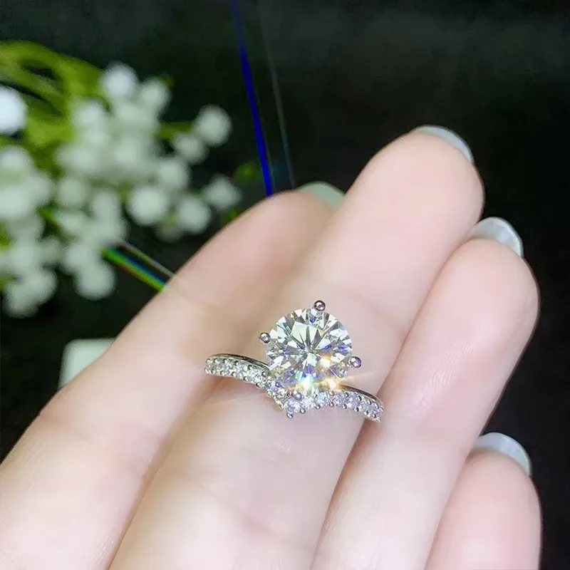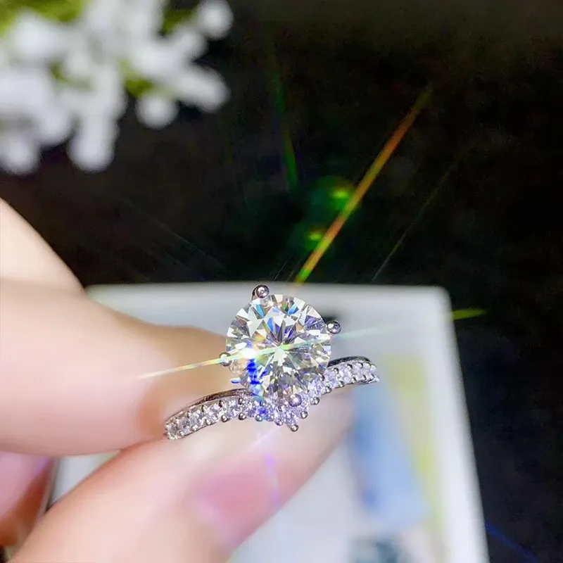 S925 Gold-Plated Moissanite Ring Setting for 2ct Round - Fashionable Unset Mount