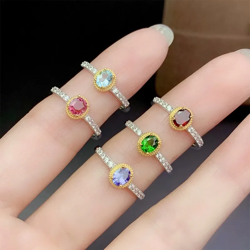 S925 18K Dual-Tone Gold Ring Setting 4x5mm Oval Ruby/Sapphire/Emerald/Tourmaline
