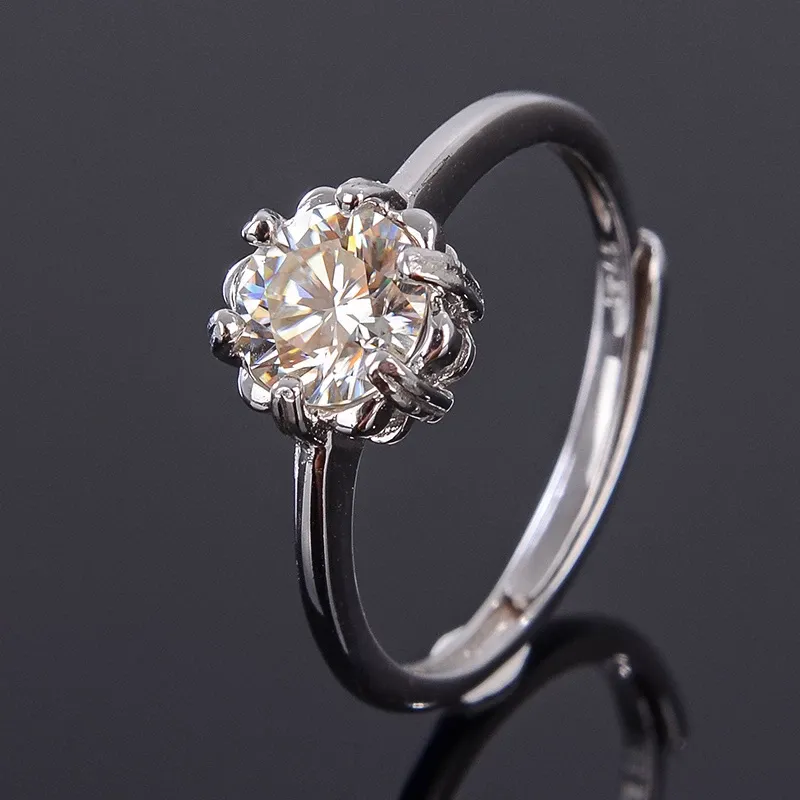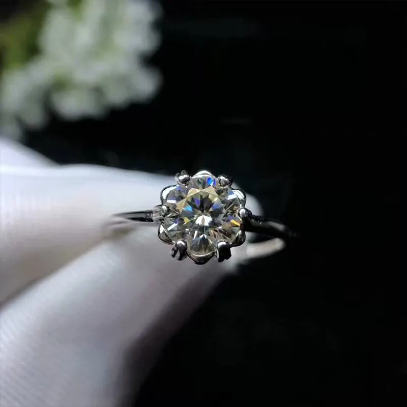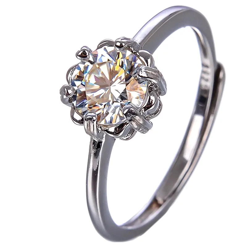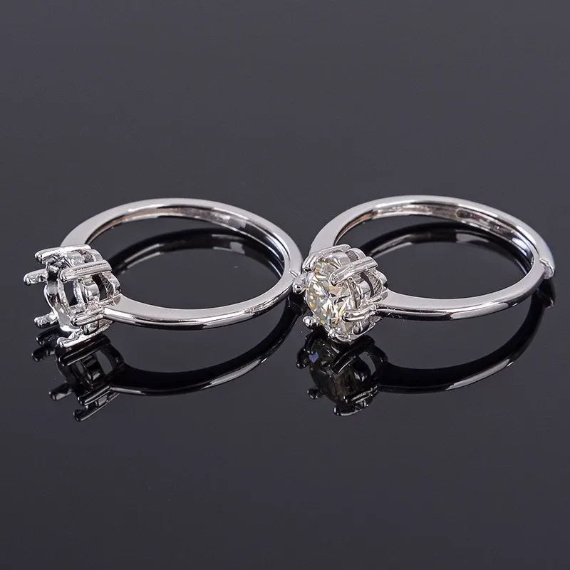 S925 Sterling Silver Gold-Plated Ring Setting for 6.5x6.5mm Round Moissanite (1ct equivalent)
