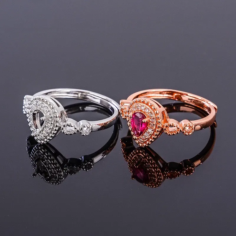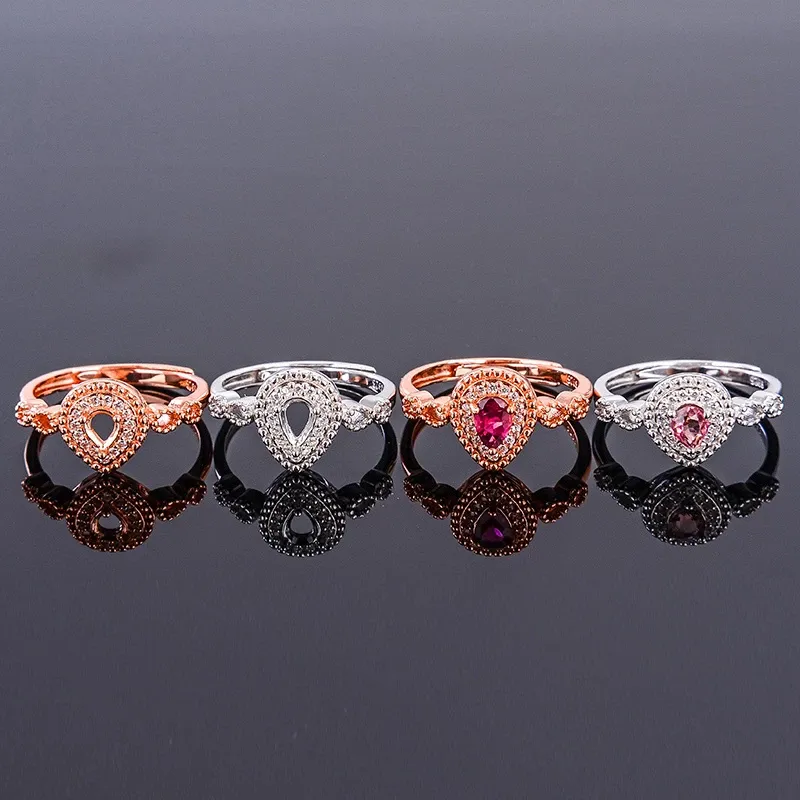 S925 Sterling Silver Gold-Plated Ring Setting for Teardrop Cabochon 4x5 4x6mm