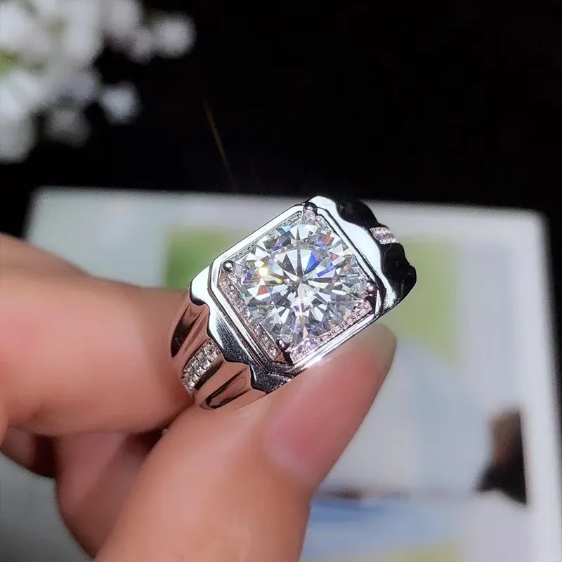 S925 Gold-Plated Men's Ring Setting for 9x9mm (3ct) Round Faceted Colored Moissanite