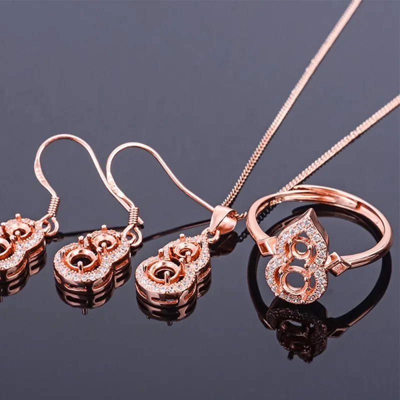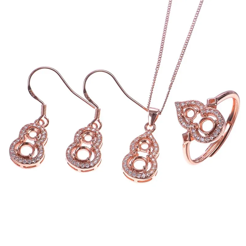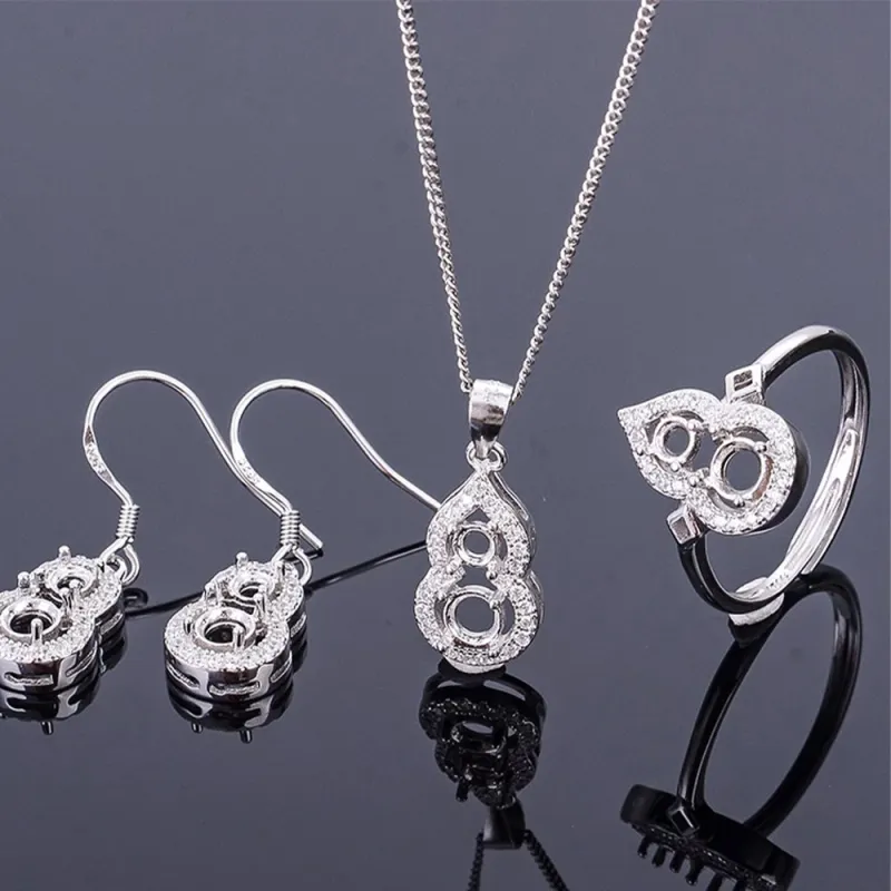 Sterling Silver Gourd Ring Setting for 3/4mm Round Jadeite/Gemstones